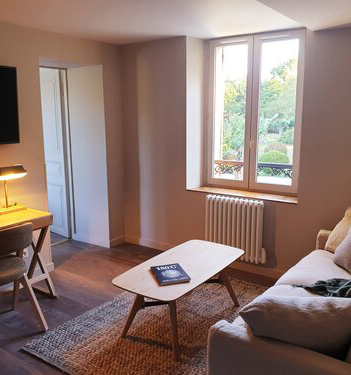 Chambre de 27 m² au 2ème étage- vue sur cour et parc avec un coin salon